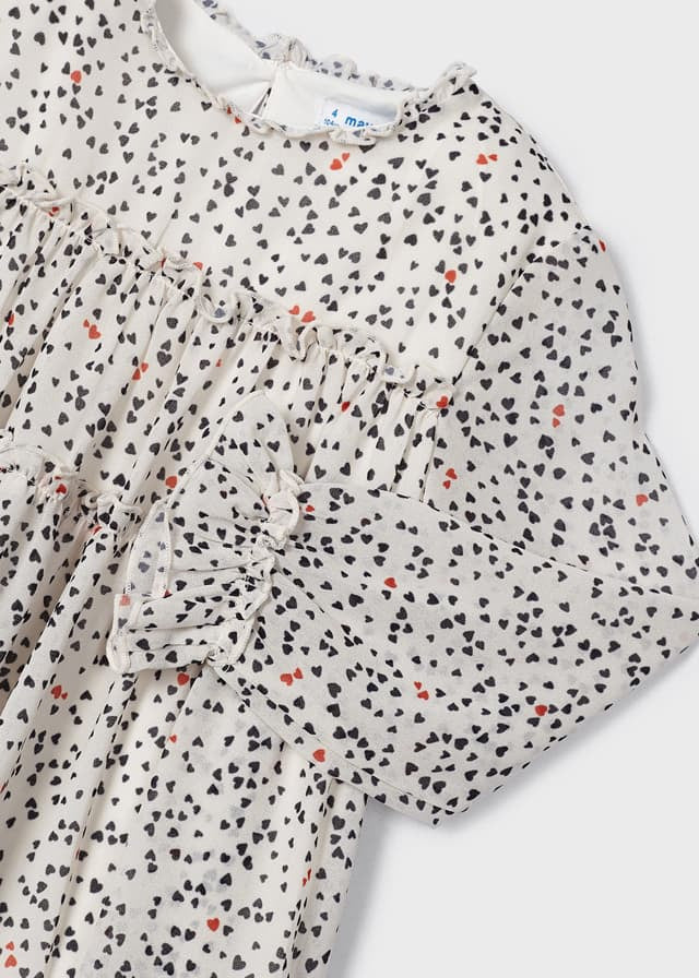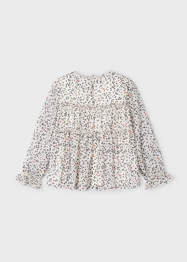 Ваша маленька модниця заслуговує на особливий стиль, і ця блузка з принтом сердець від іспанського бренду Mayoral стане її улюбленим елементом гардеробу. Виготовлена з 100% поліестеру, вона легка, повітряна та надзвичайно зручна, що робить її ідеальним вибором для будь-якого випадку. Цей виріб поєднує в собі ніжність та вишуканість, підкреслюючи дитячу індивідуальність. Дрібний принт сердець додає блузці грайливого шарму, а вільний крій забезпечує комфорт протягом усього дня.