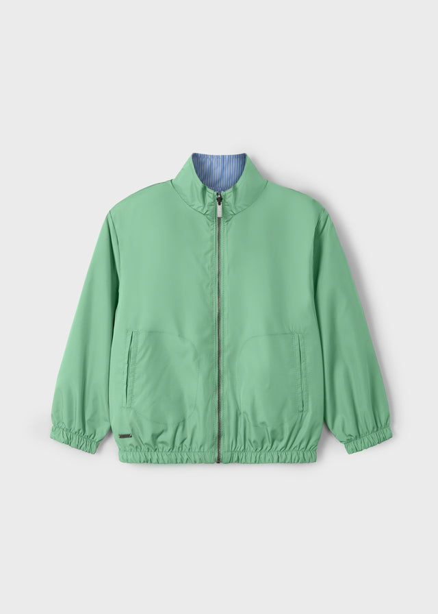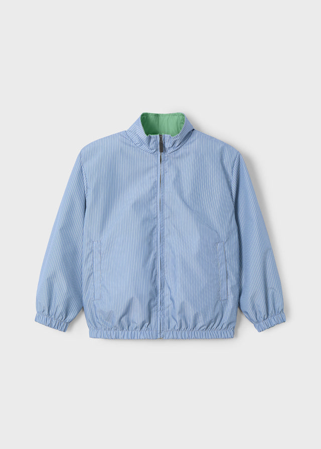 Легка двостороння куртка для хлопчика – стильний і практичний вибір для весни та осені. Одна сторона виконана в ніжному зеленому відтінку, інша – у блакитно-білу смужку, що дозволяє легко змінювати образ залежно від настрою.
