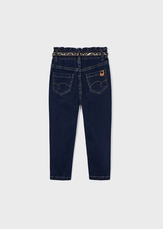 Джинси для дівчинки темно-сині Mom з леопардовим поясом