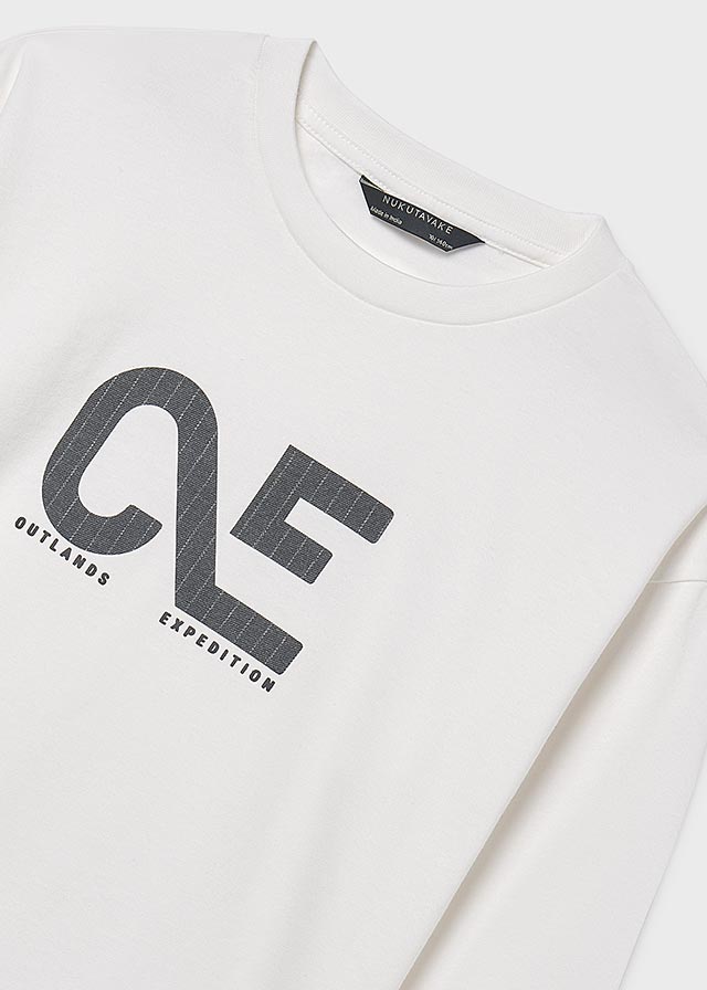 🌍 Білий лонгслів для хлопчика 12–16 років з написом OE Expedition