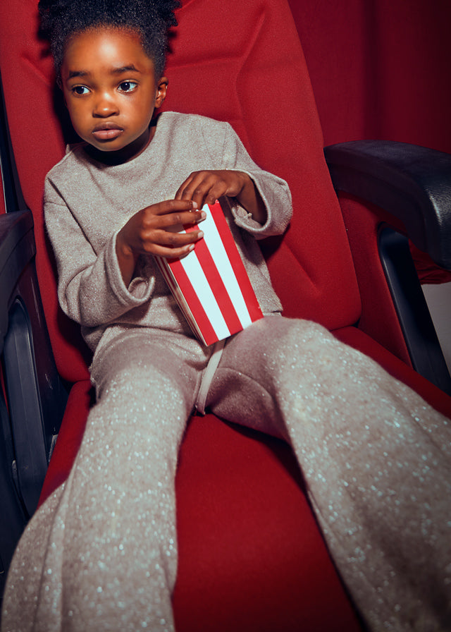 Стильний і зручний трикотажний костюм для дівчинки з люрексом — чудовий вибір на кожен день і особливі моменти. Комплект складається з м’якого світшота з бантом на спинці та брюк прямого крою з еластичним поясом.