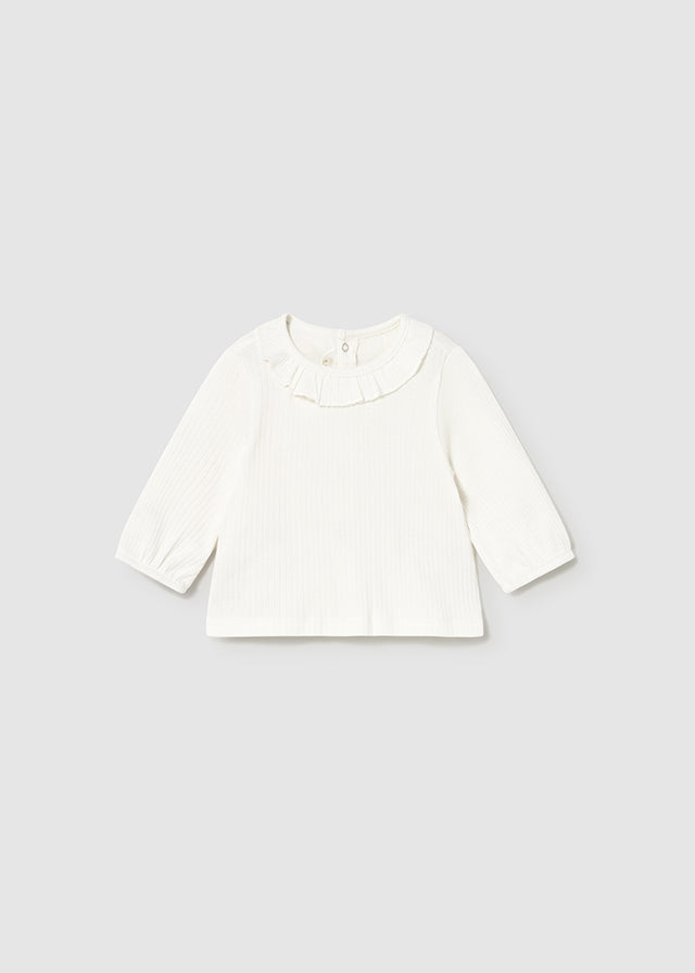 ✔️ біла трикотажна футболка з довгим рукавом і хвилястим комірцем