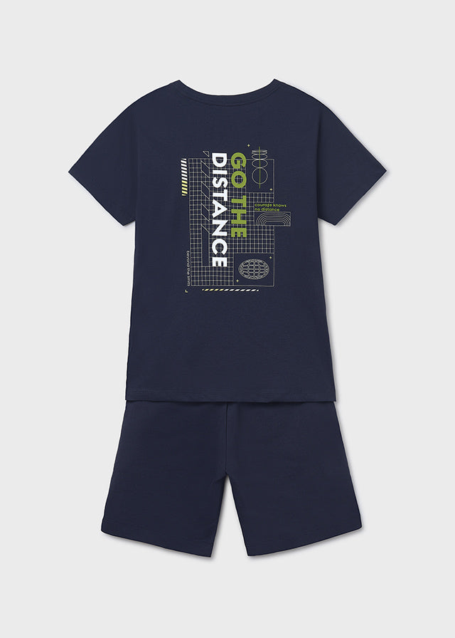 Комплект для хлопчика: темно-синя футболка з принтом + бермуди (12, 16 років)
