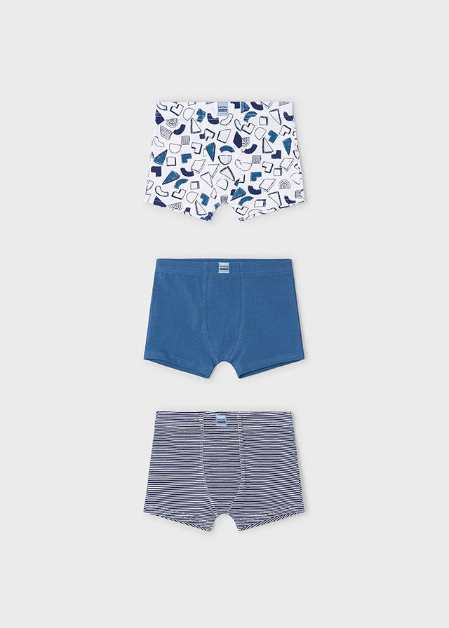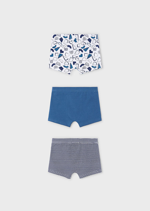 Комплект трусиків-боксерів для хлопчика Mayoral (3 шт) — сині, смугасті, з геометричним принтом 🔷