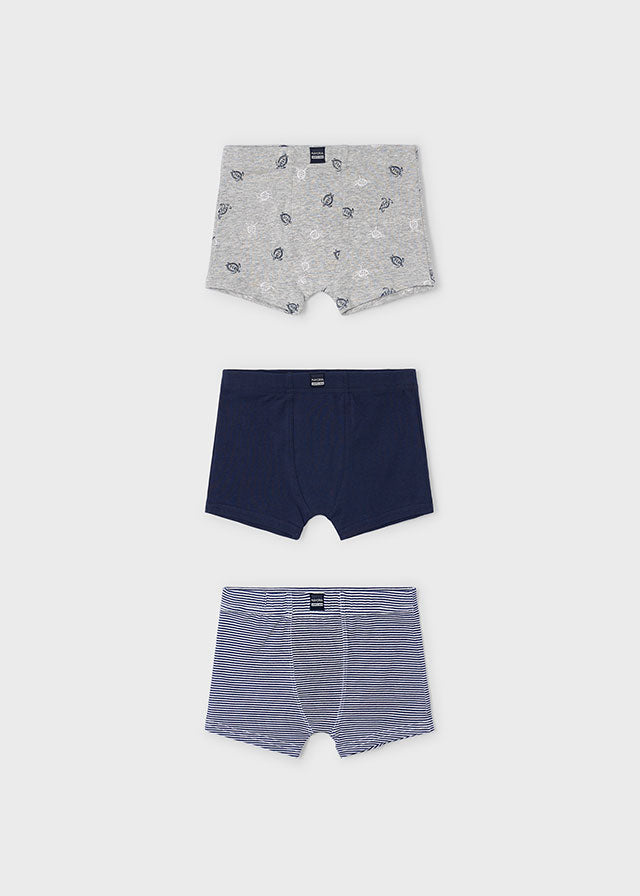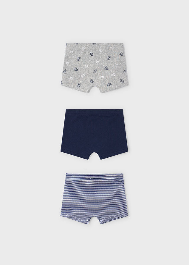 Комплект трусиків-боксерів для хлопчика Mayoral (3 шт) — темно-сині, сірі, смугасті 🐢