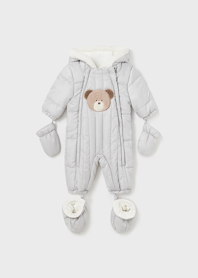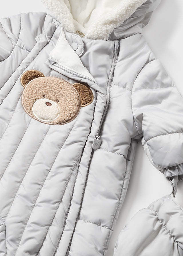 Подаруйте своєму малюку тепло та комфорт з цим чарівним сірим комбінезоном від іспанського бренду Mayoral. Ідеальний для холодної осені або теплої зими, цей комбінезон забезпечить вашого малюка надійним захистом від негоди. Зручний дизайн з милим ведмедиком на грудях додає йому особливої привабливості.