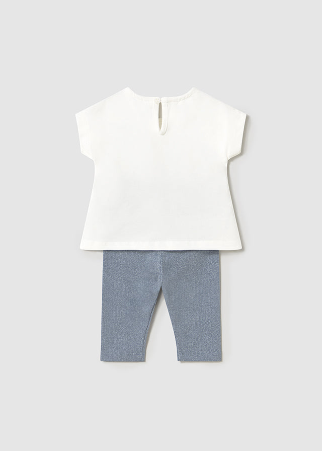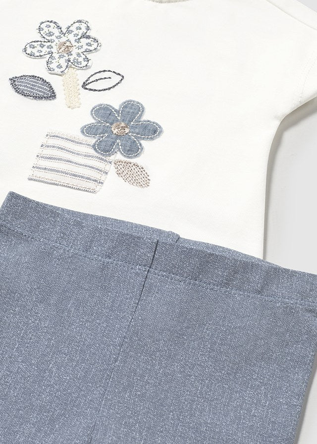 🌸 Чарівний костюм для дівчинки від іспанського бренду Mayoral – ідеальний вибір для комфорту та стилю малюка. Комплект складається з ніжної білої футболки з вишивкою блакитних ромашок та зручних легінсів у благородному блакитному відтінку.
