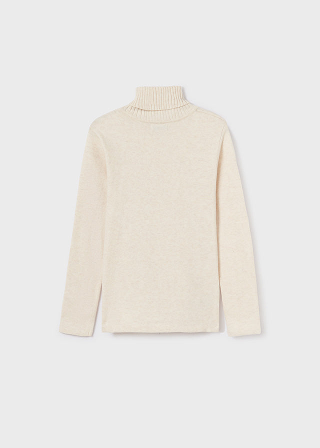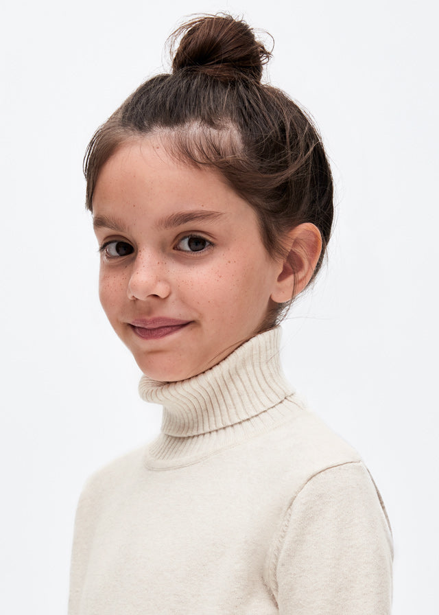 Молочний гольф для дівчинки від іспанського бренду Mayoral – це стильний і універсальний елемент гардеробу, який стане незамінним для прохолодної пори року. Гольф виготовлений з високоякісного матеріалу, що складається з 80% бавовни, 17% поліаміду та 3% еластану, що забезпечує м'якість, еластичність та комфорт під час носіння. Завдяки класичному фасону з високим коміром, цей гольф надійно захищає від холоду, не створюючи дискомфорту.