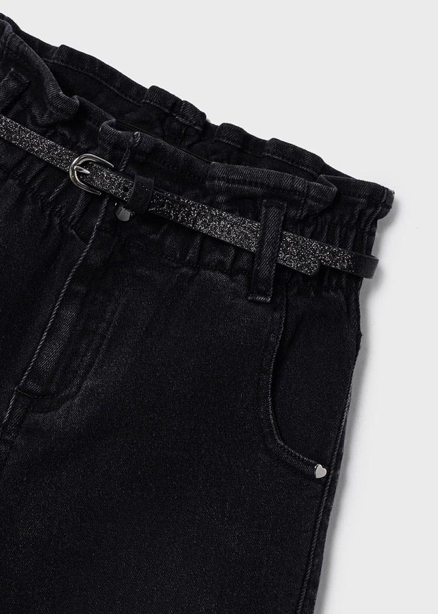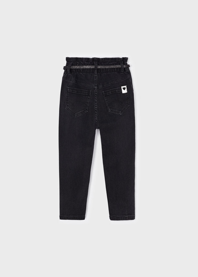 Сніпет: Стильні чорні мом-джинси для дівчинки з поясом від Mayoral. Ідеальне поєднання модного вигляду та комфорту. Купуйте у розмірах 5-9 років у нашому інтернет-магазині!