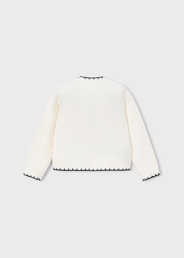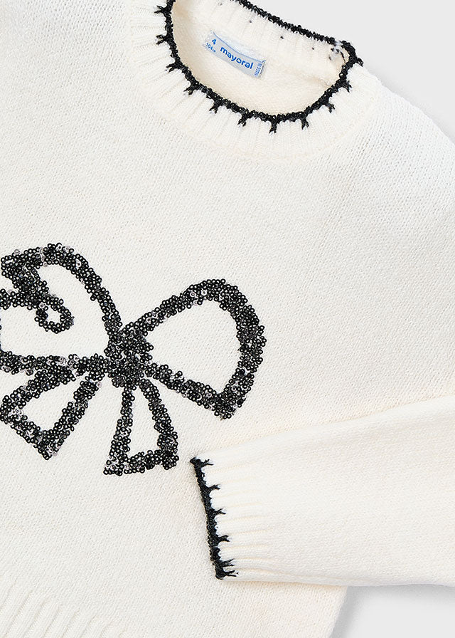 Кремовий светр з паєтками-бантом для дівчинки Mayoral