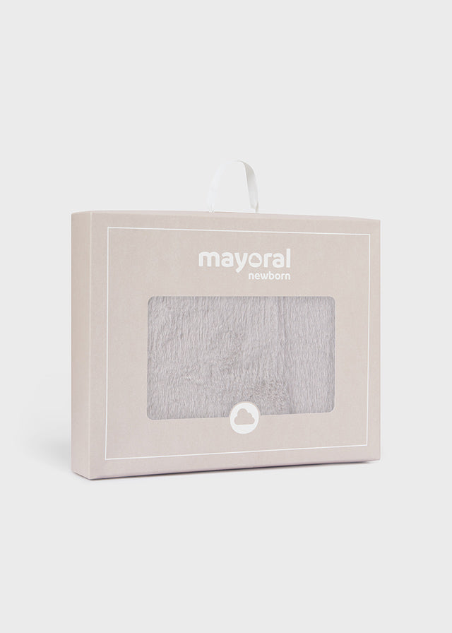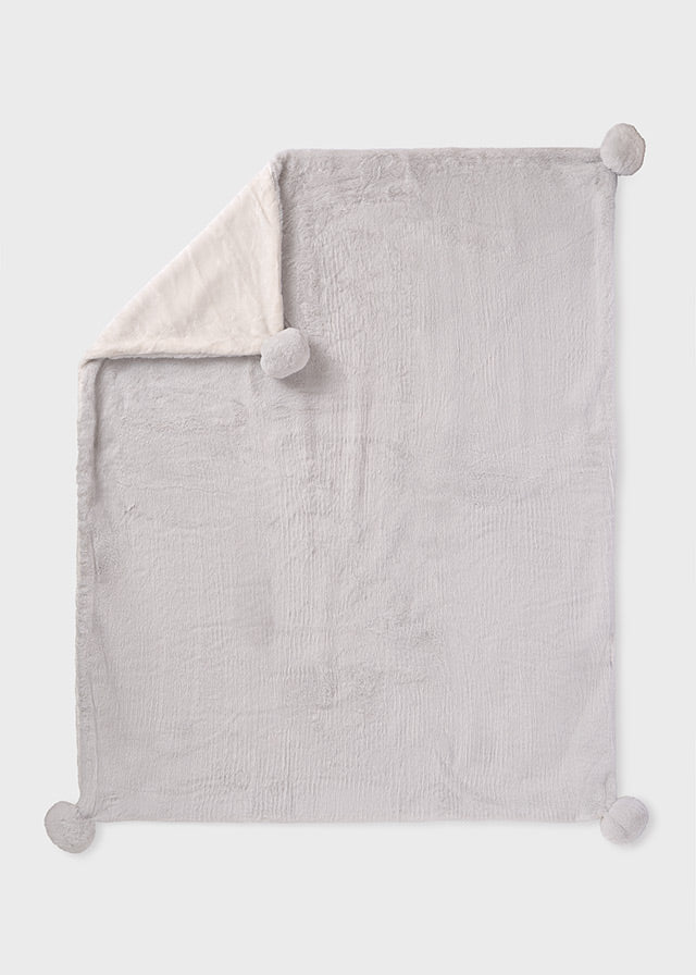 Сірий плюшевий плед для новонароджених від іспанського бренду Mayoral створений для того, щоб огортати малюка ніжністю і теплом. Виготовлений з високоякісного плюшу, цей плед не лише надзвичайно м'який на дотик, але й чудово зберігає тепло, роблячи його ідеальним вибором для холодної пори року. Чотири милі помпони по кутах додають виробу особливого шарму, роблячи його стильним та сучасним аксесуаром.