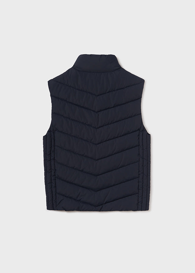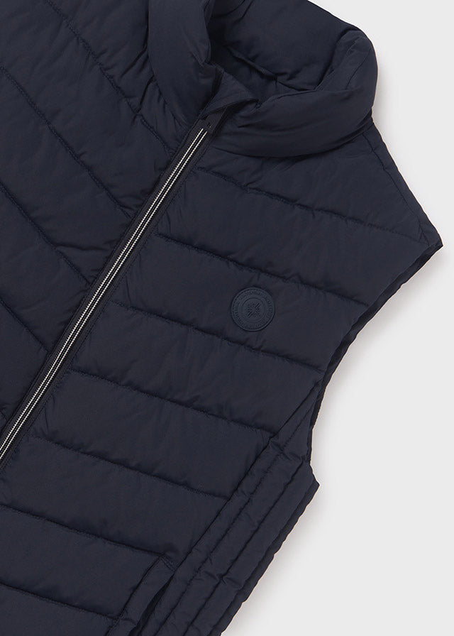 Темно-синя жилетка зі стьобаним дизайном для хлопчика віком 10-14 років є стильним та функціональним рішенням для прохолодної погоди. Ця жилетка виконана у мінімалістичному стилі з акцентом на комфорт та практичність. Стьобаний малюнок додає їй сучасного вигляду, а високий комір та застібка-блискавка по всій довжині забезпечують додатковий захист від холоду.