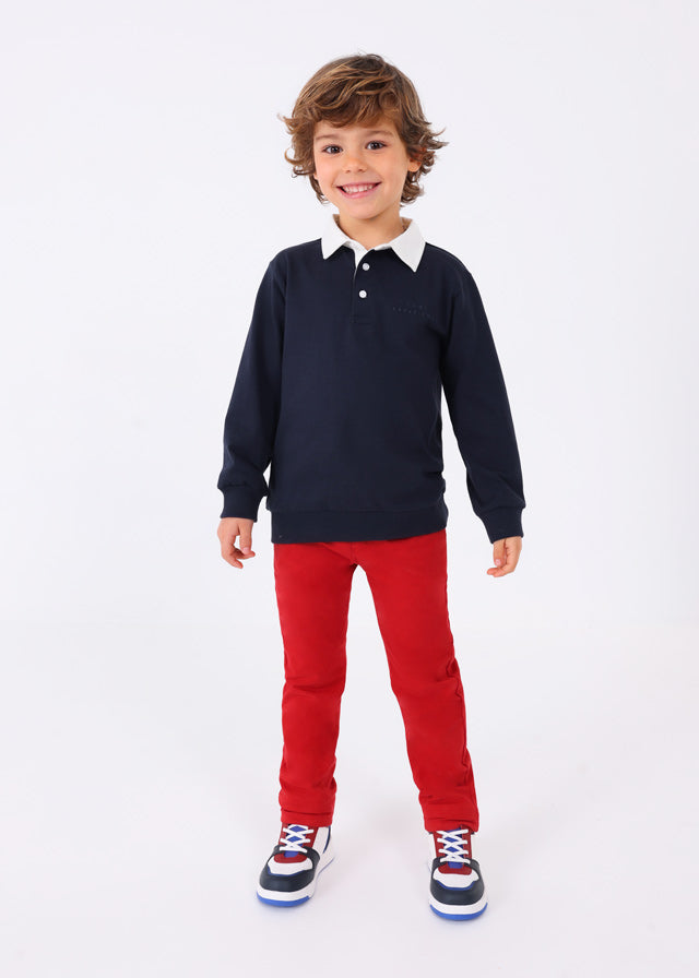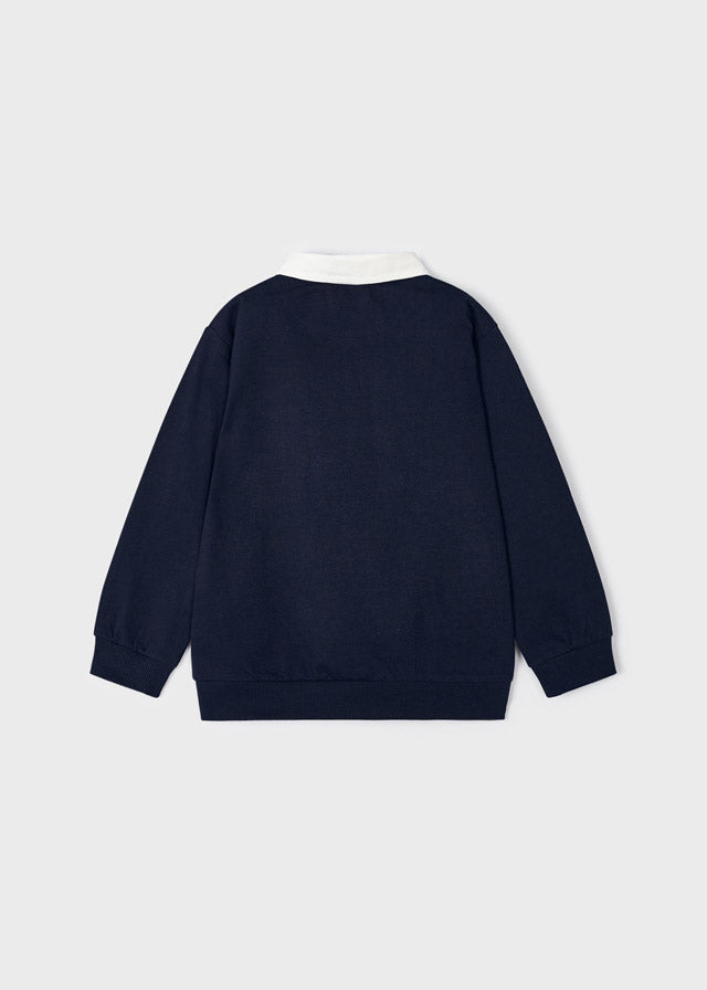 Темно-синє поло з білим комірцем від іспанського бренду Mayoral – чудовий вибір для хлопчиків 8 років, які цінують комфорт та стиль. Виготовлене з високоякісної тканини, що складається на 99% з бавовни та 1% еластану, це поло забезпечує м'якість та зручність у носінні. Бавовняна тканина дозволяє шкірі дихати, роблячи поло ідеальним для щоденного використання, а еластан додає еластичності, забезпечуючи зручну посадку.