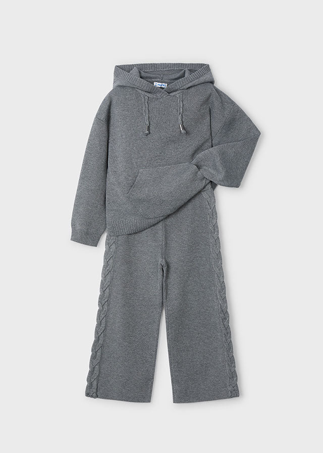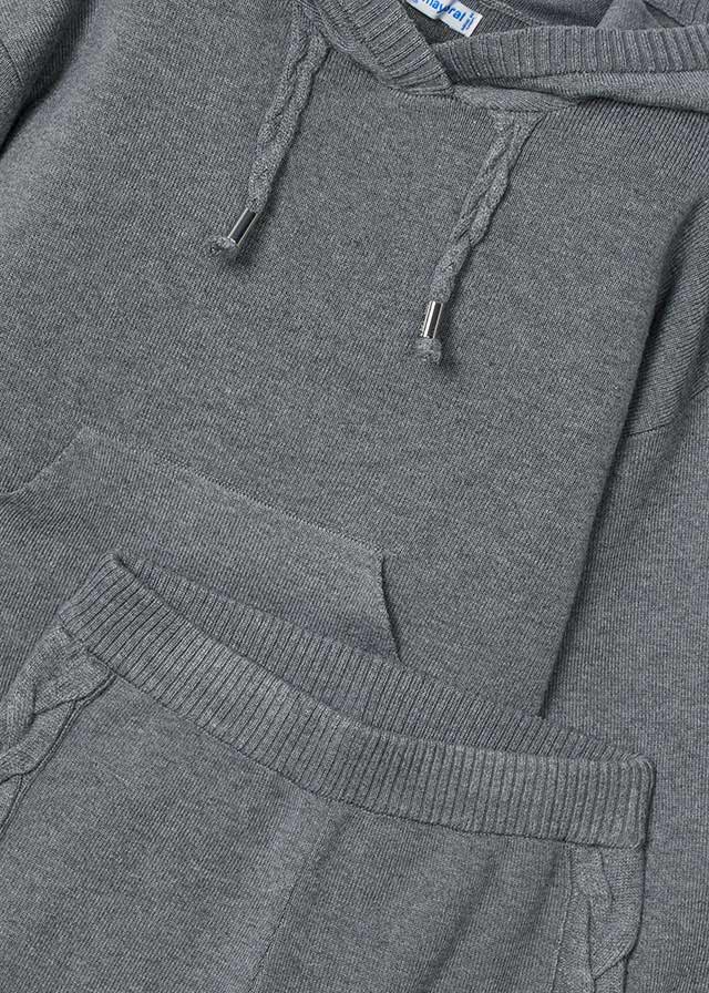 Представляємо стильний та зручний в'язаний костюм для дівчинки від іспанського бренду Майорал. Цей сірий костюм включає худі та штани, які забезпечують комфорт та теплоту у прохолодну погоду.