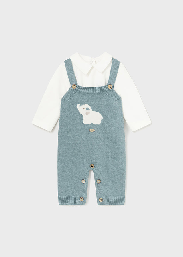 Кардиган виконаний у класичному стилі з дерев'яними ґудзиками, що додає йому особливого шарму. Комбінезон прикрашений милим зображенням слоника, роблячи його не тільки комфортним, але й надзвичайно привабливим. Боді з комірцем підкреслює стильний вигляд комплекту та робить його ідеальним для щоденного використання або для особливих подій.
