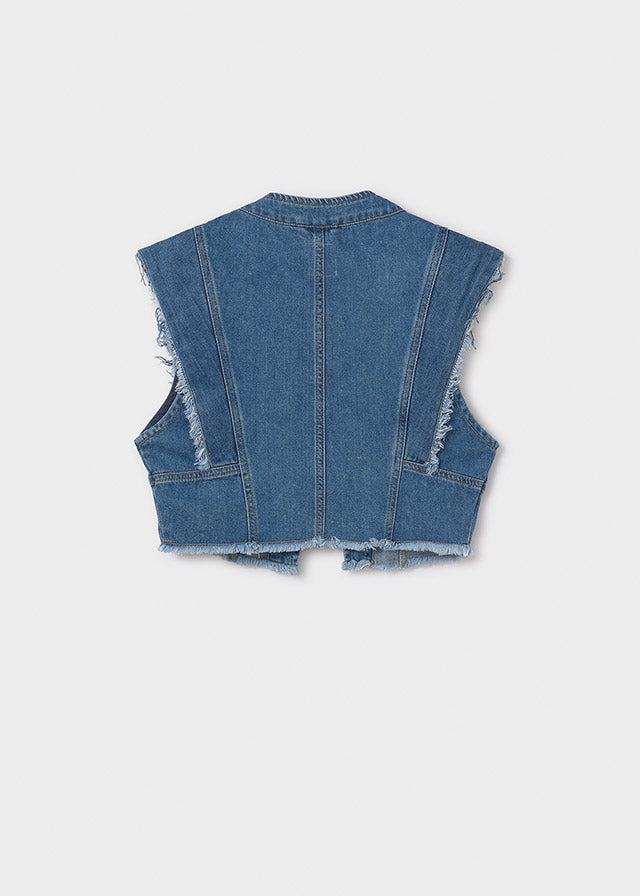 Джинсова жилетка для дівчинки 12–14 років з необробленими краями