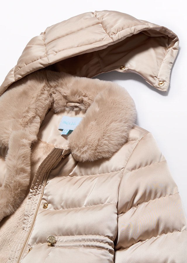 Зимова куртка для дівчинки від іспанського бренду Abel&Lula — це стильна і практична модель для холодної пори року. Вона виготовлена в ніжному кремовому кольорі, який легко поєднується з іншими речами в гардеробі. М'яка хутряна обробка на капюшоні та вздовж застібки забезпечує додатковий комфорт і тепло. Модель має зручні кишені, прикрашені золотистими ґудзиками, що додають вишуканості. Куртка оснащена капюшоном, який можна відстібнути за потреби.